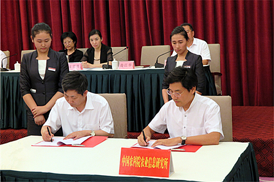 为了贯彻党中央、国务院关于“三农”工作的要求和农业部、落实中国农科院与临沂市政府农业科技合作框架协议,以及中国科协《关于支持农村专业技术协会开展农技社会化服务的意见》的精神,以实际行动践行“三严三实”,7月17日,中国农业科学院农业信息研究所与沂蒙革命老区山东省临沂市科协签署了科技合作协议,刘继芳书记、孟宪学副所长带领信息所专家与临沂市基层农技协负责人代表、相关涉农企业负责人进行了对接洽谈。中国科协、山东省科协、临沂市委相关领导出席签字仪式并发表讲话。