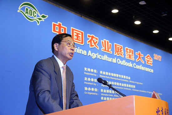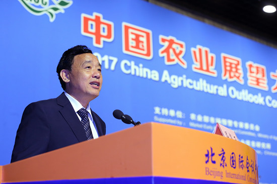 韩俊副主任在讲话中指出,《中国农业展望报告》连续4年发布,报告受到政府决策部门和产业界越来越高的重视,在政府决策中也起到了越来越重要的作用。我国农业展望工作虽然起步相对比较晚,但经过多年努力,已经形成了一支高水平的专家队伍。他强调,中国是一个农业生产和贸易大国,要加快建立健全权威、规范、持续的农业数据信息收集、分析和发布体系,加快建立全球农业数据调查分析系统。他强调,推动农业供给侧结构性改革,必须把保障国家的粮食安全作为一个基本的底线,调减玉米等供过于求的粮食品种,但绝不能损害粮食生产能力,稳定水稻、小麦生产,确保谷物基本自给、口粮绝对安全。他指出,中国已经成为最大的农产品进口国,在市场上影响很大,世界各国都非常关注,应该通过农业展望报告,更加主动的发出中国的声音。